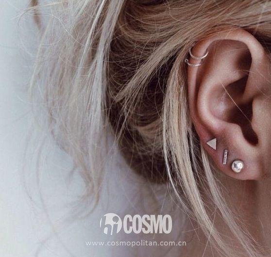 这种戴法是COCO比较推荐的,叠戴项链的时髦潮流其实还没有过,叠戴耳钉更让“耳朵上的风景”更美。