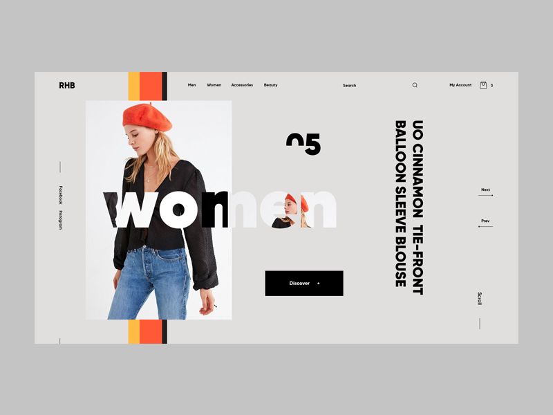 他的主要设计技巧是使用并不常规的图片裁剪方式和不同颜色的配搭,就可以轻松营造出一种高端、时髦的气息,功力可见一斑。他的设计非常具有参考意义,很适合初学者模仿训练。