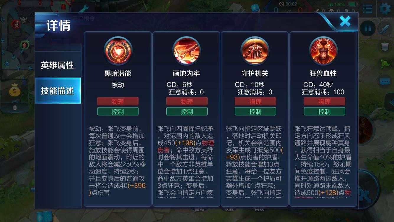 辅助张飞比边路张飞还要能扛,变身前保护能力很强,变身后降低保护能力,大幅提升进攻能力。因此即使狂意满了,也不用马上变身。