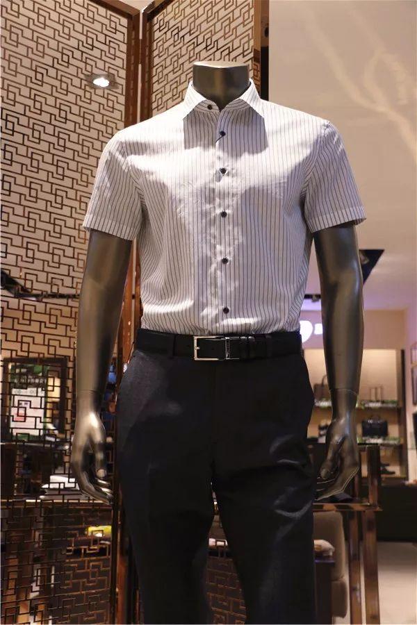 竖条纹衬衫,帮你在视觉上显瘦,进口面料,舒适透气。搭配深色系纯羊毛长裤,绅士~