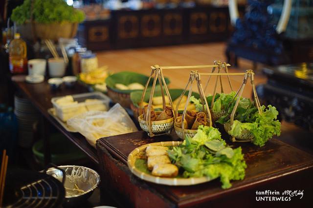 店内环境相当雅致,有室内餐厅也有露天花园,搭配古雅的越式摆设,还有自己的吧台。晚上7点左右更有穿着传统越南服装的歌手演出,这样的环境一边品尝越式美食一边欣赏现场表演绝对是一种享受。
