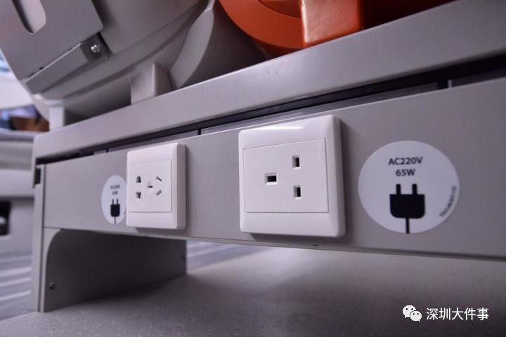 据介绍,每列高铁列车提供579个座位。其中,第一节及第八节车厢为头等车厢,共有68个座位,第二节至第七节为二等车厢。车厢内还特意设有2个轮椅座位。高铁车厢十分宽敞,座椅相当舒服。而且每个座位均设有两脚及三脚电源插座,全车有WiFi提供,乘客可在车上无间断上网。