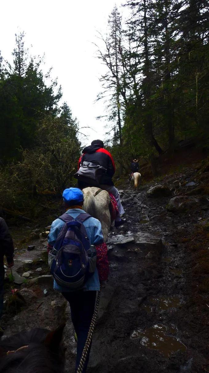 到四姑娘山要做好被“虐”的准备,生态游户外游居多,没有代步车,要么步行、要么骑马。高原步行,要量力而行。