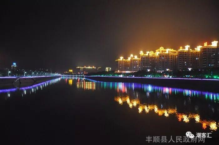 图为丰顺一河两岸夜景灯光璀璨
