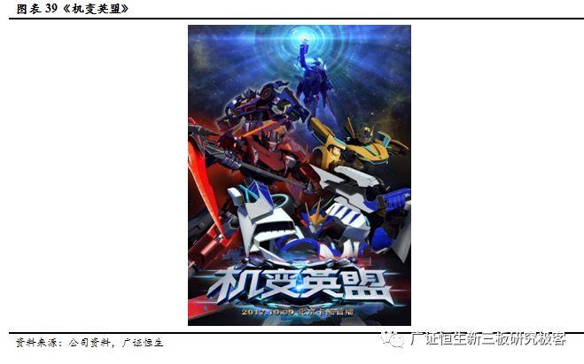 广证恒生的玩具系列报告曾指出,IP运营能力是优秀的玩具企业的核心竞争力,IP与玩具等衍生品的有机结合是玩具企业保持长期竞争力的核心。2015年,在佳奇科技具备一定的产品设计研发能力之时,其意图通过布局动漫IP以提升玩具IP属性,进入新一轮成长:佳奇科技以变形汽车人题材为突破口,未来将不局限于一部或者两部片子的投资,而是进行长期规划,沉淀品牌,最终形成机器人为IP的企业文化。公司通过介入前端动漫人物的设计、开发,成功布局属于公司自己的机器人IP,开发出系列动画片《机变英盟》,布局前端的动漫IP产业链。2016年11月11日《机变英盟》在全网播出,反应效果良好,全网点击量过亿,相较于同类型动漫的*放播**量,机变英盟的*放播**量处于中上水平;2017年末《机变英盟》续集于各大儿童电视频道播出,全网点击量也突破亿次;围绕产品打造动漫IP促使变形机器人系列销量大增,预计收入突破亿元大关,同比增长近2倍。