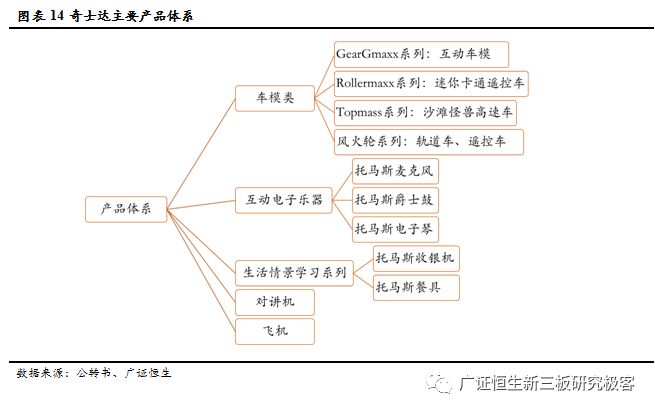 重申广证恒生玩具系列报告的核心观点之一:消费行业的三大竞争支柱包括品牌力、产品力、渠道力;而品牌力的构建需要企业在具备一定实力之后通过中长期的沉淀而形成,因此在企业的发展初期,产品力与渠道力成为企业初期构建核心竞争力、寻求差异化竞争的可选择商业路径之一。伴随着中国玩具行业的消费属性日益增强,IP已成为拉动玩具销售的重要因素,其提供的附加值日益重要;一方面,奇士达利用香港子公司网罗全球大部分主流的销售渠道优势,“产品力”与“渠道力”成为奇士达差异化竞争、从众多同质化竞争对手中脱颖而出的重要手段,*管双**齐下助奇士达的出口外销业务不断飞跃。另一方面,在企业成长初期,由于自身资源有限且自主IP开发的风险过大,基于自身产品研发能力获得利用经典知名IP授权、从而构建 “品牌力”成为可行选择。由于所有授权方都同意奇士达产品以双品牌出现,极大拉升奇士达自有品牌KIDZTECH的美誉度和认知率。2017年8月国际授权业最专业杂志《License Global》发布了从服饰到电子产品等领域150家最强被授权商榜单,奇士达是中国大陆的唯一被评选为最强被授权商的企业。
