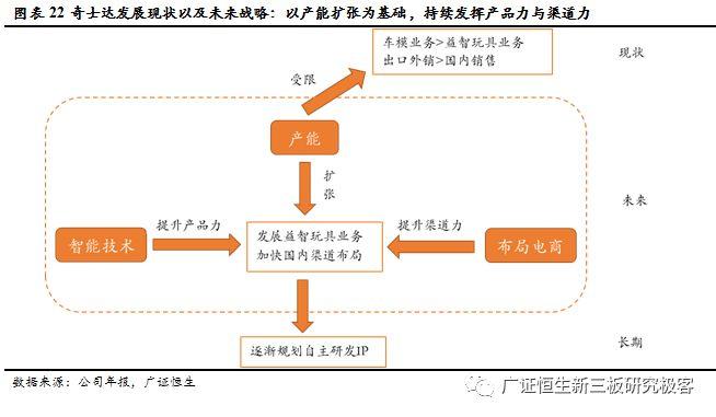为了能够进一步健康发展,奇士达将延续产品与渠道的主战略,中短期内公司重点解决的主要问题有加速产能扩张、发展益智玩具以及加速布局国内市场,而从长远来说,逐步考虑自有优质IP的打造。