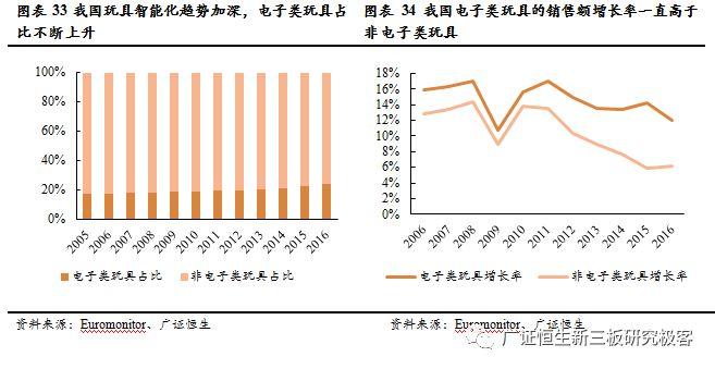 在没有形成足够强的风险承担能力之前,我们认为授权IP、外包IP研发等方式相对较优,其优点在于企业既可获得优质IP的溢价效应,又不用承担IP研发失败的风险。这一点也在我国部分玩具企业的发展模式中得到印证,比如佳奇科技通过外包IP研发,即打造了自主的机器人IP,又减少了研发风险。奇士达也是利用玩具巨头美泰的授权IP加码自身产品。两者都是在积累了一定的产品力与渠道力之后,在进一步发展中,选择了风险适宜的方式引入优质IP,扩大规模效应。其效果也是显而易见,佳奇科技与奇士达2016年营收增速分别达40.34%、25.72%,而2016年中国玩具行业整体销售规模增速仅5.1%。