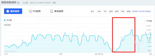 要选择高速增长的拐点品类。在互联网上,每年都有一些品类经历缓慢的培育阶段后,会面临爆发式增长的拐点,而在拐点附近进行切入是最好时机,比如15年的投影仪和卷发棒,16年的保险柜。而灭火器同样如此,伴随汽车年检开始强制灭火器检查和人们消防意识的提升,最近2年天猫灭火器每年增长率超过100%,甚至在去年达到了1000万个以上,搜索词增速也达到每年100%。