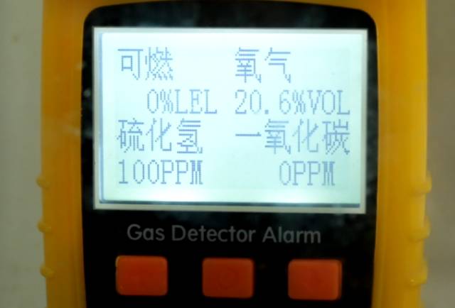 此时,硫化氢浓度已经爆表,超出了100ppm。