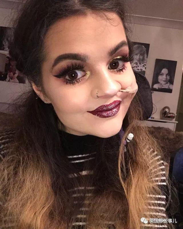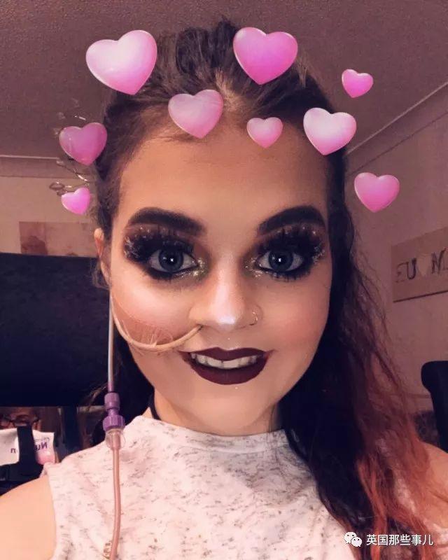 Emily在这个账号上展示自己的各种妆容,对于脸上那根本来很碍眼的进食管,Emily表示