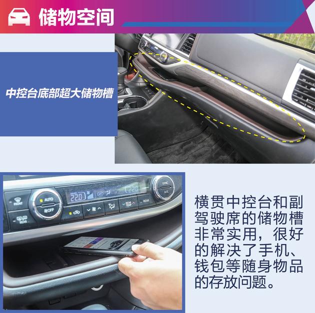 说到中央扶手箱,这是汉兰达储物空间上的另一个亮点,它的容积足足有24.5L,可能这个数字并不会让你直观的感受到它有多大,那不妨点开下面的视频,一定给你惊喜。