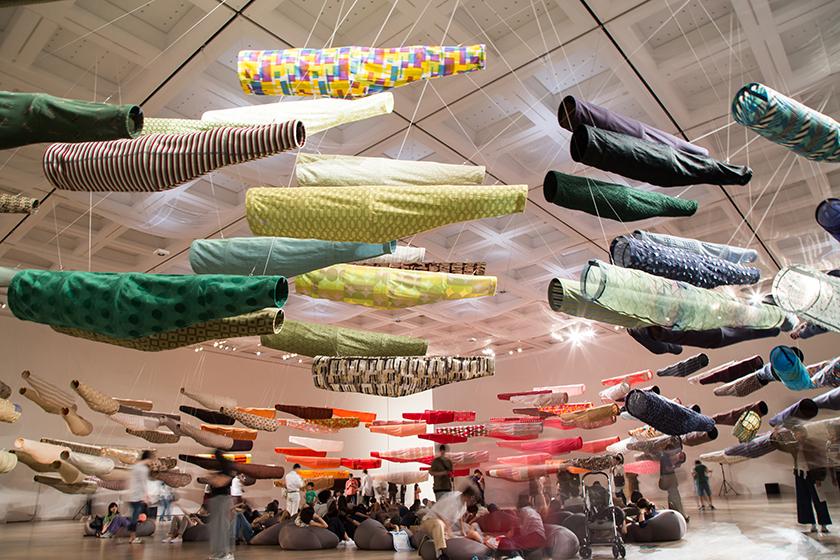 2007 年开馆的「国立新美术馆」,是全日本第五间由政府认证的国立美术馆。由知名平面设计师藤佐藤可士和担任艺术指导的「国立新美术馆」,同时也是日本现存所有国立美术馆中,占地面积(30,000 平方公尺)最大的一间。本次「六本木 Art Night」开催期间,馆内所展出的特展为织品设计师须藤玲子,以 300 面鲤鱼旗所打造的特别企划展,并邀来知名艺术家鬼头健吾将美术馆外观重新妆点,运用布、灯光与投影等不同媒介,打造成五彩缤纷的奇异幻境。