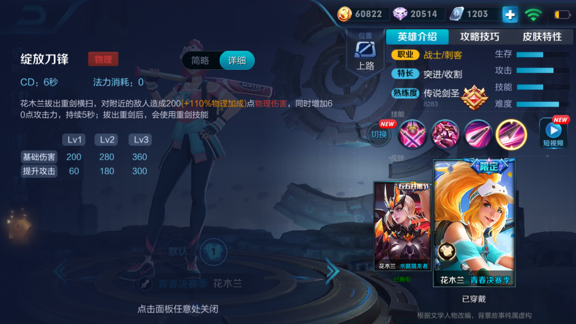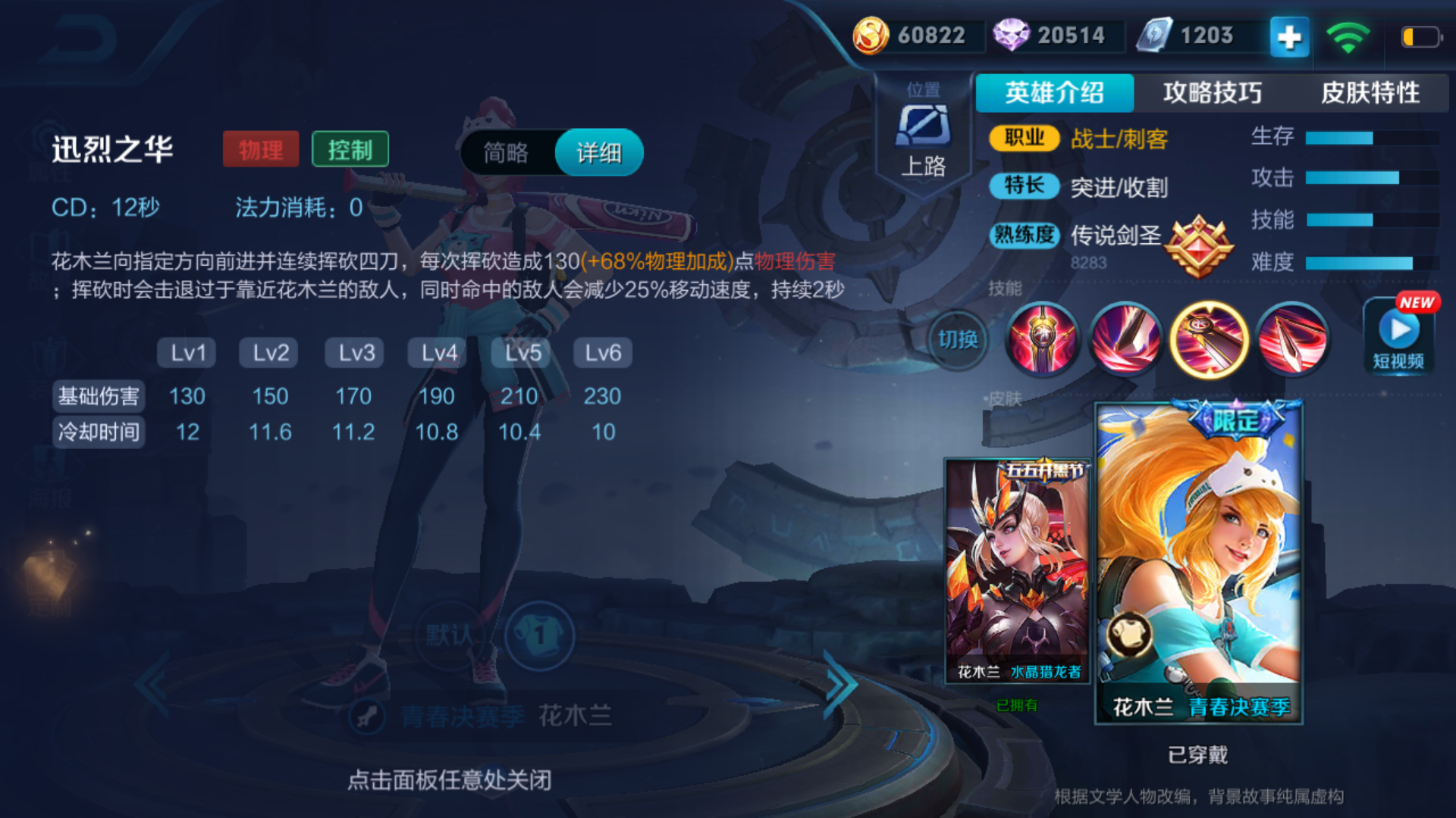 为何花木兰一直是大部分人的上分利器?虽然花木兰经过几次削弱,但靠着清线快,支援快,有伤害有控制,霸体强切后排等强势点,仍然可以称为边路一姐。在排位,巅峰赛,花木兰的非ban必选率可以说高达90%。