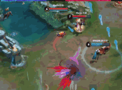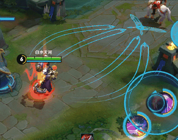 自己打buff时,后期可以远程三技能大招刷新再开三秒掉蓝,或者把三换成二,值得关注的是这里你第一下技能命中蓝,它有个延迟时间,最好不要预判蓝走位,直接对着原点继续射。