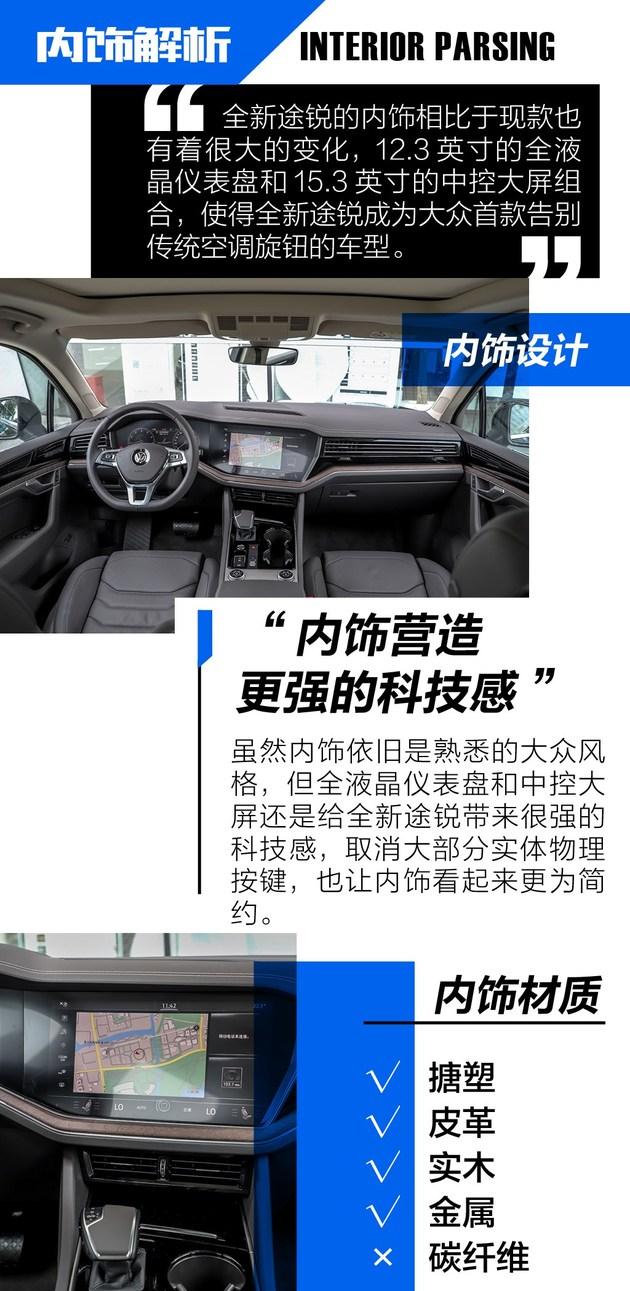 外观小结:全新途锐的外观还是保持着一个“大叔”该有的感觉,但相比于之前它要更加的精致,同时线条也更为硬朗。同时,新车的外观配置上也是十分的丰富,全景天窗、无钥匙进入以及较为特别的夜视功能。虽说全新途锐在外观上保持着一贯稳重大气的同时,还有着很多的配置。