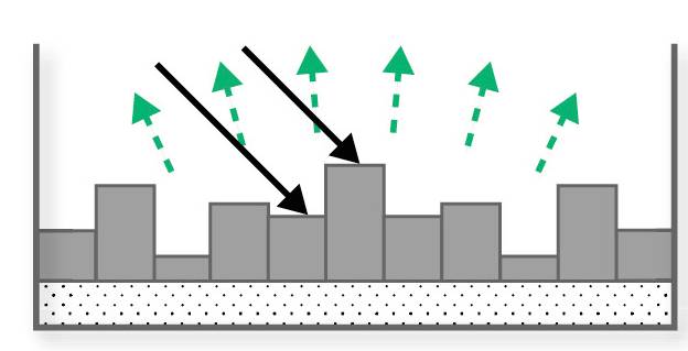 扩散体、书架等不规则表面会扩散声波。扩散角度取决于扩散体的设计。通常,低频声波很难被扩散。