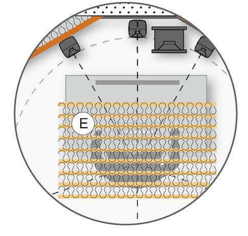 E 在听音区域的天花板上安装吸声材料和扩散体,可以减少来自天花板的反射。