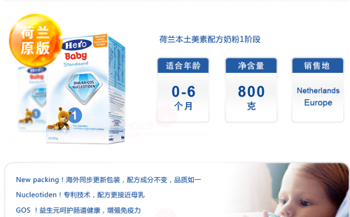 荷兰奶粉品牌排行榜第二名:荷兰美素hero baby奶粉