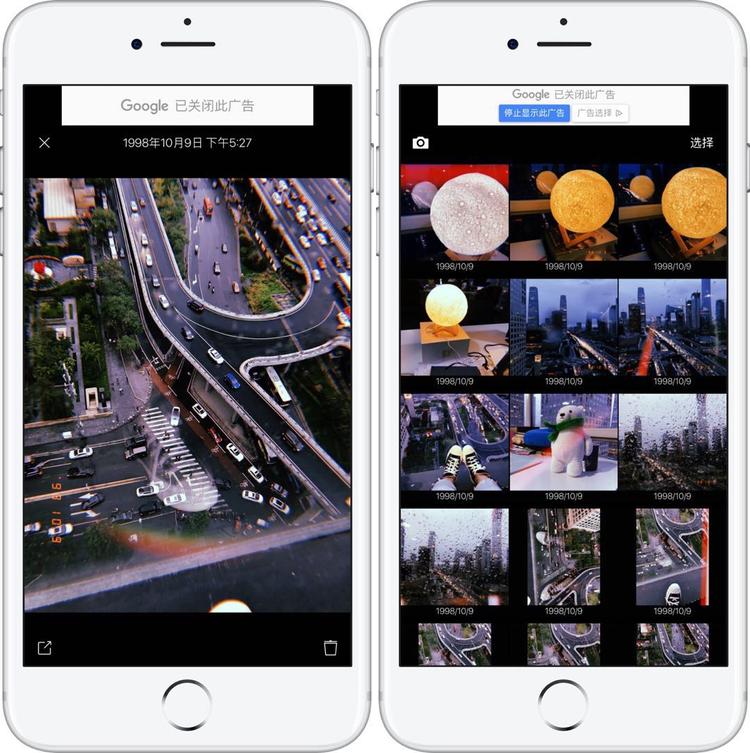说实话那个取景框看不看也无所谓,外行人想象中的胶片质感不就在于冲洗出来的那一点惊喜(或是惊吓)么。拍完之后可以在“lab”里看到所有的相片,拍摄日期会正常显示,只不过前面都加上了 1998 的年份,照片上也有模拟旧照片的水印:橙色的年/月/日数字。