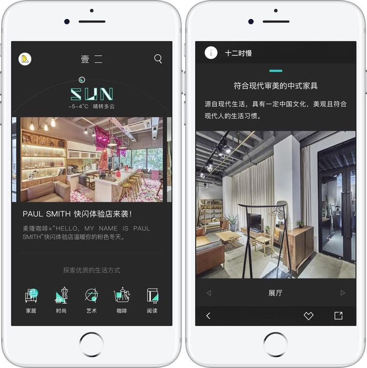 壹二的内容涵盖艺术、时尚、家居、咖啡、书店这五个生活方式领域。