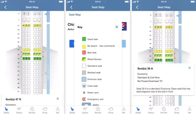 这是在线旅游公司 TripAdvisor 旗下的应用,它可以直观地给旅客推荐座位,并且指出其优势所在,也会提醒你哪些座位空间更小、别人上洗手间会路过。这样也就能大致判断出哪些位置受到机翼的视野影响比较大,有针对性地挑选位置,提前订好座位。