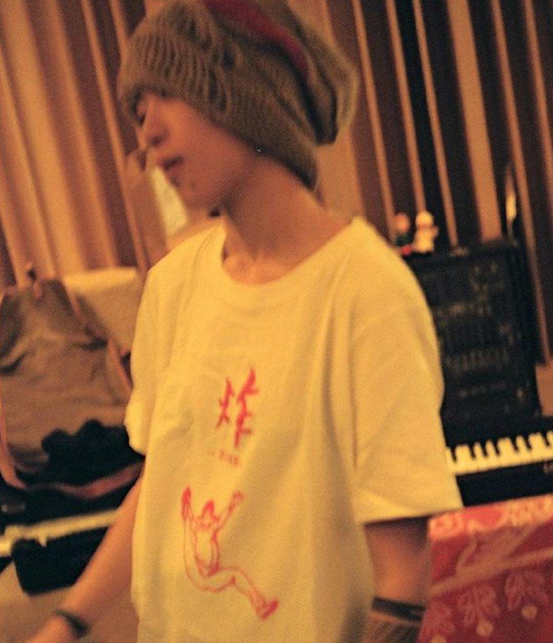 除了童童以外,很多乐手也穿过这系列简单有力,又个性有趣的衣服,比如臧鸿飞、赌鬼乐队主唱王梓、闪星乐队主唱赵梦、生命之饼鼓手屁股等。