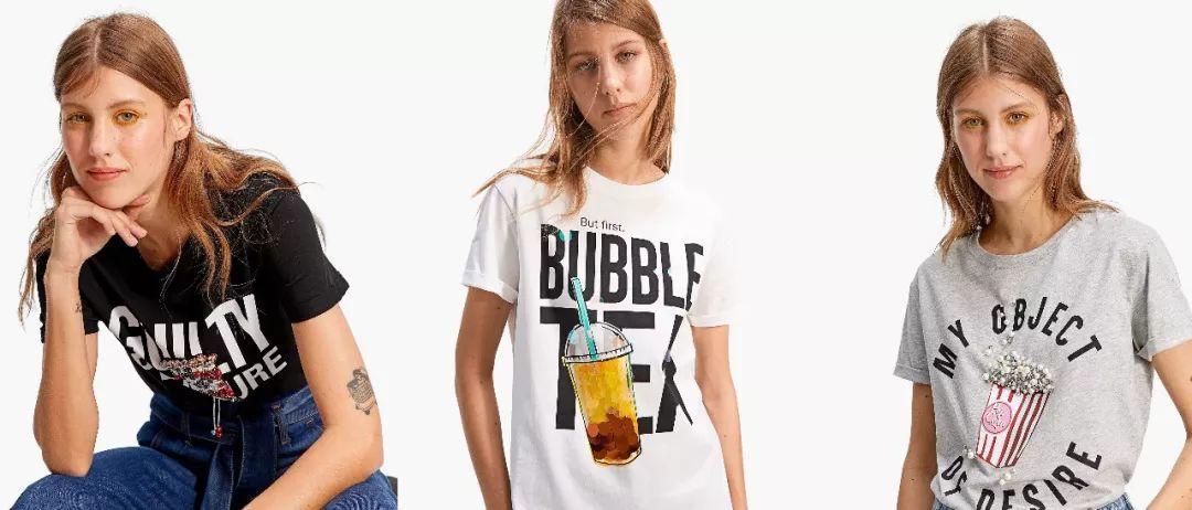 除了印有经典的动物、魔幻、骷髅等元素外,还推出了食物 T 恤。据说在一次清洗后,印花部分就可完全与 T 恤融为一体,看不出两者之间的界限,分分钟帮你赚足回头率。