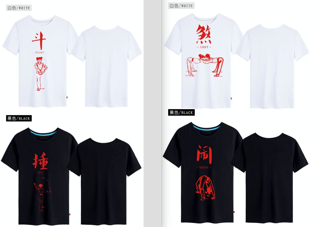 这件同款可以在淘宝上以关键字「女子武术队+窦靖童」搜到,除了 炸 以外,还有 捶、 喝 、 斗、煞、闹,一共六种图案。正面是中文大字和线条插画,背面是女子武术队几个字。衬衫有黑、白、灰三种主色。