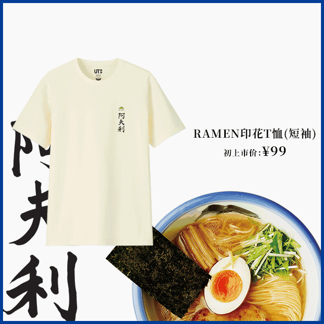 每年优衣库的文化衫 UT 系列都令人期待,今年的 UT 格外日本,除了和「周刊少年Jump」推出 28 个主题的 50 周年纪念款合作 UT,摘取葛饰北斋「富岳三十六景」中的蓝色意象,将浮世绘搬上身之外,还和日本的拉面馆合作,推出了六款 Ramen 印花 T 恤。