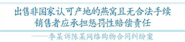 上海一中院认为,陈某虽辩称李某系委托陈某代为在香港购买涉案产品,但在其商品介绍页面中并不存在向李某告知代购的情况,陈某亦无法提供证据证明其曾通过其他方式告知李某代购的事宜或双方之间订立有委托合同,故双方之间系买卖合同法律关系。根据国家的相关公告,明确截至目前仅有马来西亚和印度尼西亚的燕窝产品允许以正常贸易的形式对我国出口,以快件、邮寄和旅客携带方式进出口食品的,应当符合国家质检总局相关规定。本案中,涉案产品明确标注产地为越南惠安,网页宣传的燕窝产地亦为越南,可见陈某向李某出售的涉案燕窝产地非国家认可的产地,同时陈某未提交涉案燕窝的相关报关及检验检疫证明,涉案燕窝也未标识国家相关部门规定的溯源码,故该燕窝的安全性无法保障。故陈某应当退还货款并支付价款十倍的赔偿款,对于涉案产品,予以销毁。