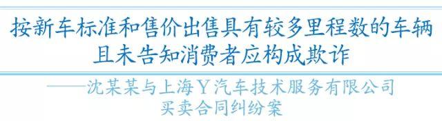 一审法院认为,沈某某与Y公司之间签订的合同,虽抬头为“汽车代购合同”,但其内容系双方就沈某某向Y公司购买车辆达成一致意见的买卖合同。系争车辆有维修和5000公里保养记录,且里程数显示3001公里,Y公司未能提供相应的证据证明该定检非系因销售车辆所致,且系争车辆于2016年4月28日经Y公司确认,里程为3243公里,显然该车辆的里程存在不符合常理之处。即便补充合同系真实的,并未体现沈某某认可该车辆非系全新车,故应当认定Y公司在销售中存有欺诈行为,现沈某某主张解除购车合同、向Y公司退还系争车辆,并要求Y公司退还车辆购车款并赔偿系争车辆价款的三倍损失,符合法律规定,予以支持。Y公司不服,上诉至上海一中院。