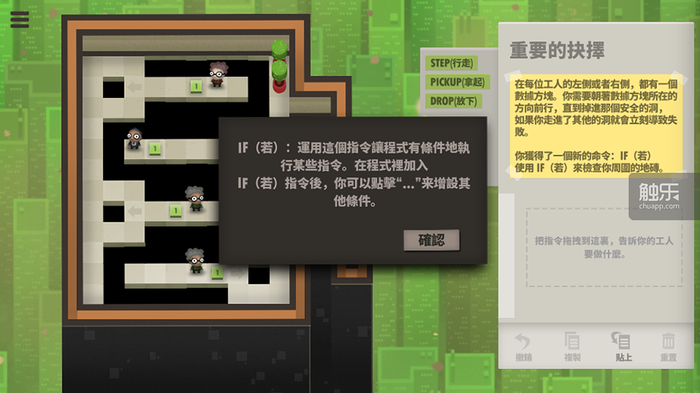 程序媛朋友曾经不止一次和我说起,前作中可以任意使用的“jump”指令,放在现实中,假如有人写代码通篇使用“goto”,那他很有可能会被打……但本作前几关就开始涉及的“if”等语句都是与现实接轨,甚至现在还在使用的东西。联系前作来看,制作团队或许希望玩家在学习编程思维的同时,多多少少也了解一下程序发展的历史。