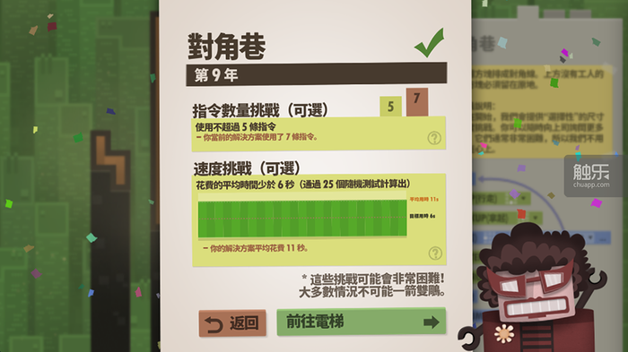 本作的挑战内容由“代码行数”“使用步数”变成了“指令数量”和“速度”,看上去更难了……