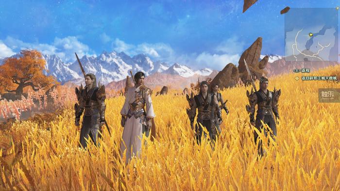 进入游戏后的第一个场景——光明野展现出了一定的设计与美术功底,金黄的地表植被、蓝色的水面与天空、远景的白色雪山,形成了鲜明的色彩对比。另外,相比前作频繁的读取,本作在第一块地图上几乎是无缝衔接的,视野也很开阔。