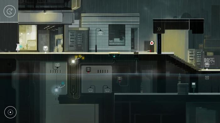 不谈这个朦朦胧胧的背景设定,《雨纪》是款非常纯粹的解谜游戏。谜题的逻辑简洁而直观,驱动城市运转的是光点,它们散布于不同的载体内,主角可以将其吸收过来,而后再次传送给其他载体,进而启动开关或降低水位。