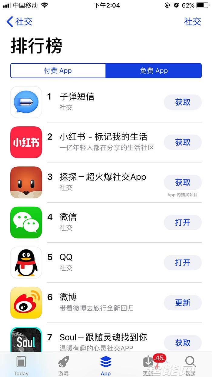 短短几天时间,*弹子**短信这个应用就从之前的默默无闻迅速冲到了苹果APP Store商店的社交类第一,力压微信、探探、小红书等应用,免费榜总榜上也位列第四,不知道今天名次还会不会上升