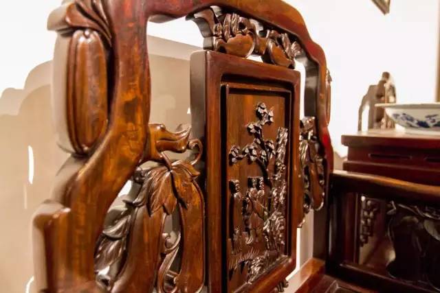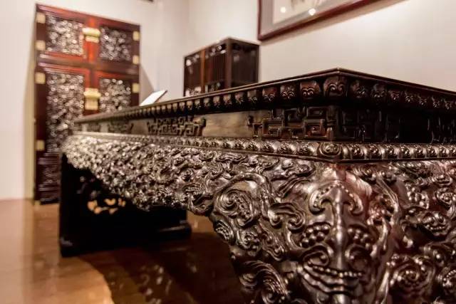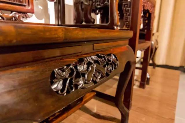 巨大的紫檀屏风、硕长的紫檀条案、典雅的硬木桌椅,客厅里一应古色古香的仿古木制家具……都仿佛在向大家娓娓讲述一个将紫檀融入生命的女人的炽热情怀。