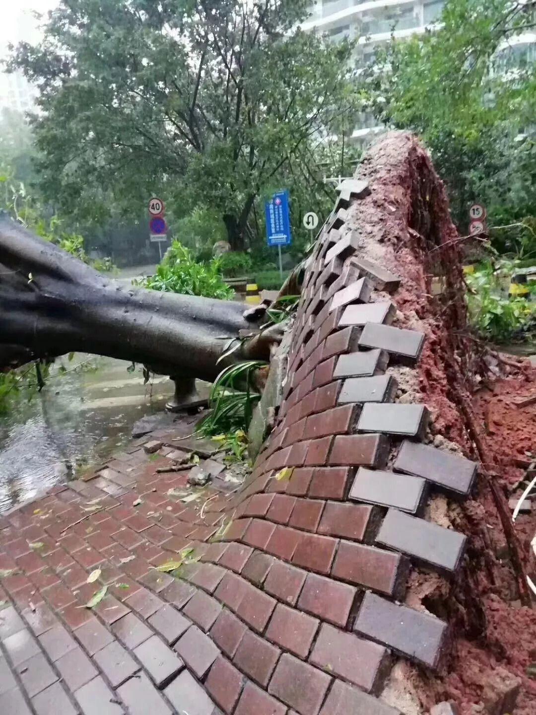以前的台风,风大但是雨也大,这次的雨绝对没有风大,所有的树都是拦腰苦苦抵抗,现在从阳台上看,断了点的树把马路都挡住了。