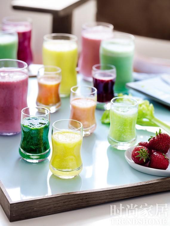 ●每天从新鲜开始 每天起床后刷半个小时微博不会有益于身体健康,但用同样的时间给全家人做鲜榨果汁却可以。黄的柠檬、绿的奇异果、红的草莓…… 酸酸甜甜,养胃又排毒。