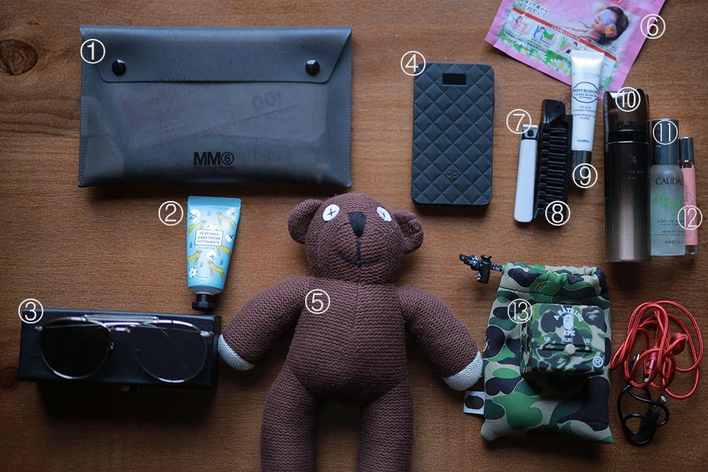此外就是一些随身的物品,太阳镜、充电宝和简单的化妆包。我不会随时补妆,但像睡眠面膜和一些眼部护肤品我都会随身带着,保证旅行时的好气色!
