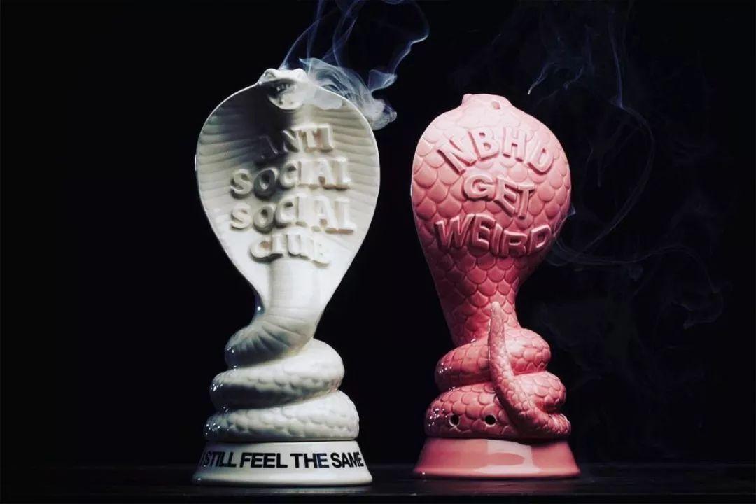 设计上,该条眼镜蛇前后方分别有「Anti Social Social Club」和「NBHD GET WEIRD」的字样浮雕,底盘则写有「STILL FEEL THE SAME」,看到实物还是挺满意的。不过唯一的缺点可能是觉得这座香座体积太小了,不够大气吧。如果,你问值不值得买?看下 NEIGHBORHOOD x FUCT SSDD 七头蛇香座现在的市场价格就知道了...(当然,肯定不会涨到七头蛇香座那么高)