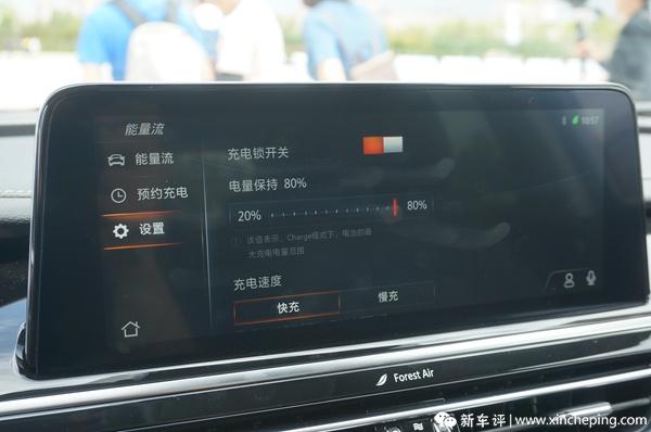 Charge这个模式是重点,它就可以让CS75 PHEV在怠速情况下,用1.5个小时把电充到80%满,充电速度比普通家庭充电桩要快很多,而且它可以设置充电的百分比,用快充还是慢充的模式来充,如果用快充模式发动机的响声会大很多。