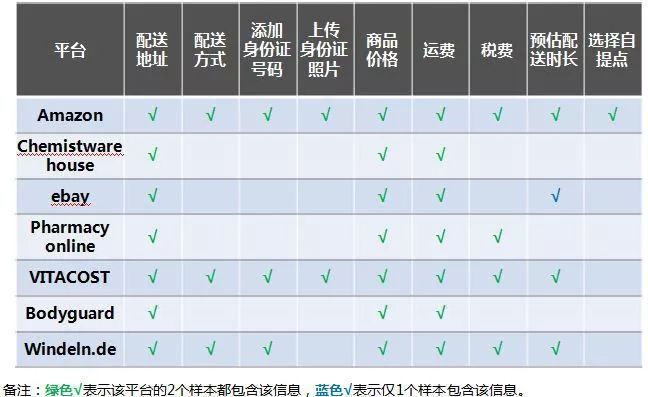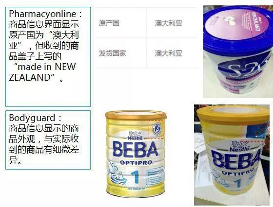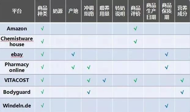 ①本次体察以奶粉为考察标的,体察发现,国外平台商品信息比较有限,所有平台都没有列明“奶源”、“转奶说明”和“生产日期”。