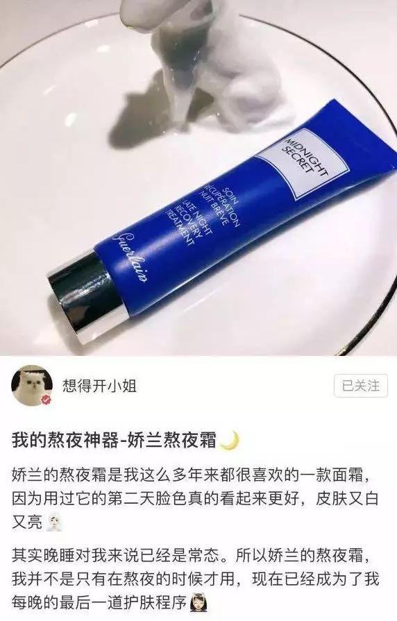 这款熬夜霜的大名叫做娇兰深夜修护精华乳,通宵熬夜必备神器!含有活性成分,急救效果奇好,能够有效的呵护干性肌肤,一抹就能够让皮肤迅速的恢复到舒适的状态。
