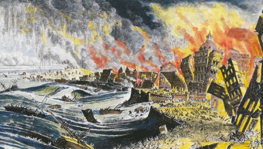里斯本近海大地震产生的海啸袭击了北塔古斯河岸