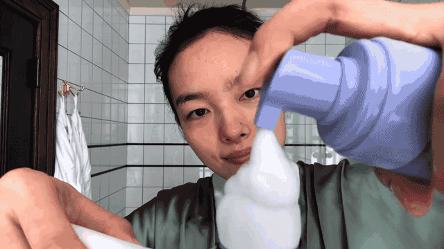 可以看出来用起泡盒打出来的泡沫真的比用手打的要厚实很多,而且绵密不容易落下,敷在脸上肯定也是绝佳的洁面体验,看来林允素颜出镜皮肤都这么好跟会洗脸绝对有很大关系。