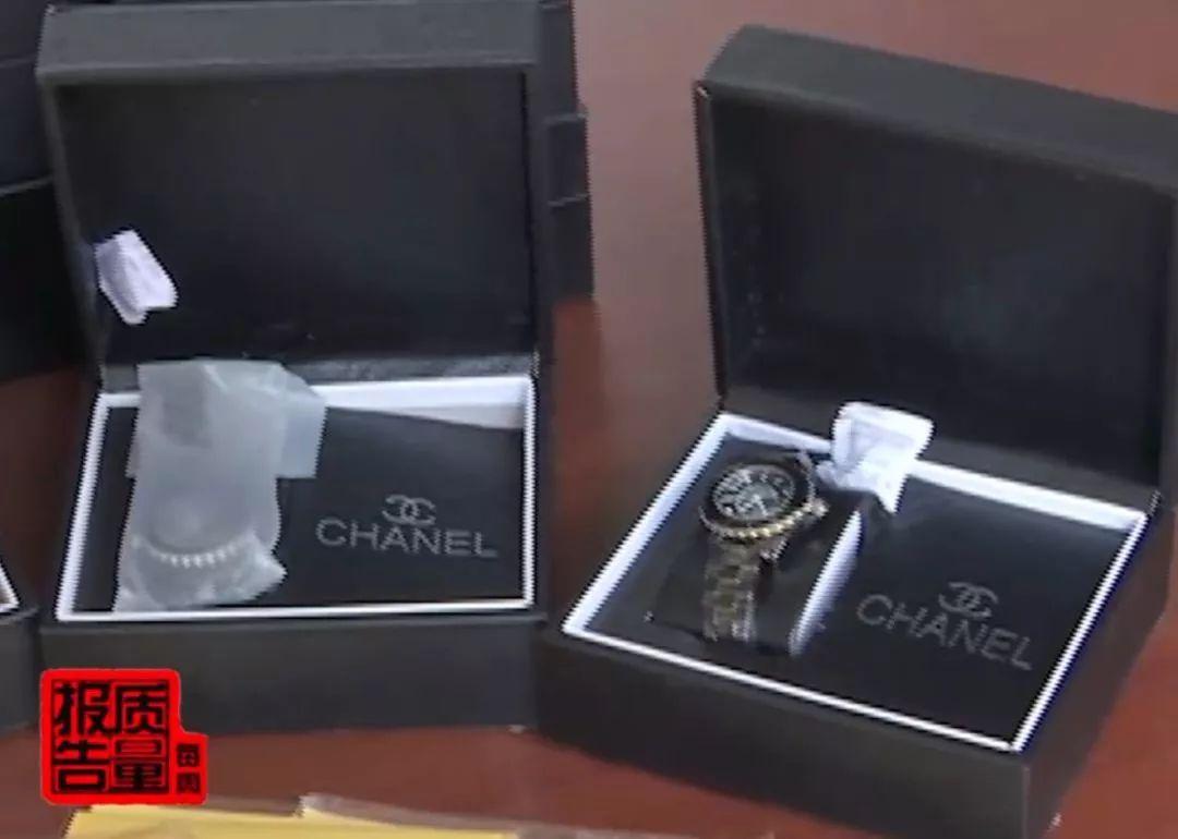 在这家网店的实体店中,执法人员发现了一款香奈儿手表,不仅包装盒精美,包装盒里面还附有很多票据。