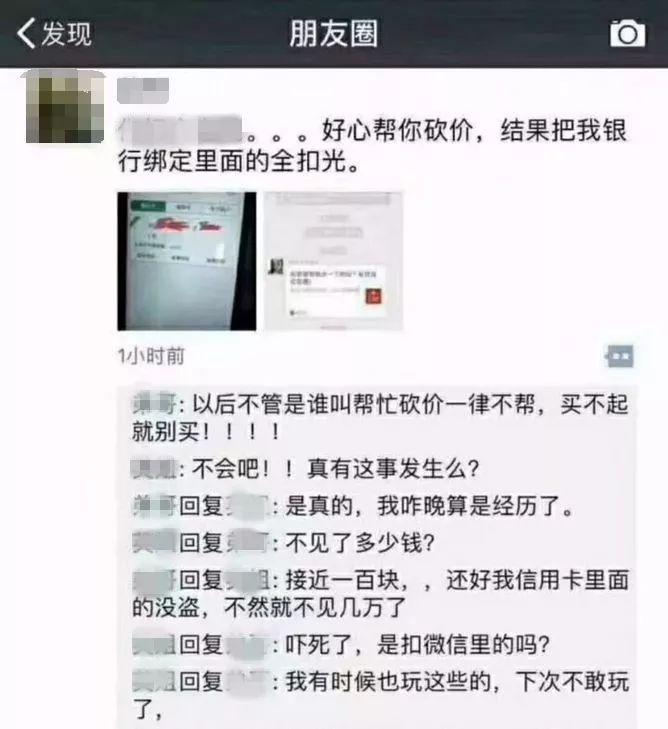 市民李先生说,他也是朋友圈砍价的受害者。日前,他看到一个朋友发的帮忙砍价链接,出于给朋友帮忙,自己没有多想就点了进去,并输入了自己的手机号码,页面也显示“你已帮朋友砍了XX元”。之后,李先生身边的许多朋友都收到了一条留着李先生名字的诈骗短信。李先生怀疑,自己和朋友的信息,就是这次“砍价”活动泄漏出去的。