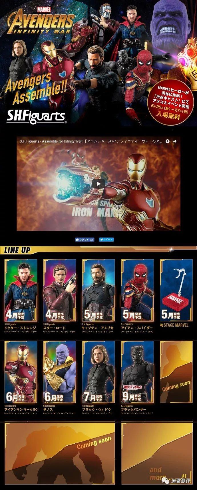 《复仇者联盟3》电影上映在即,各大玩具厂商周边攻势越来越猛,万代也毫不客气的公布了一堆SHF的发售消息!